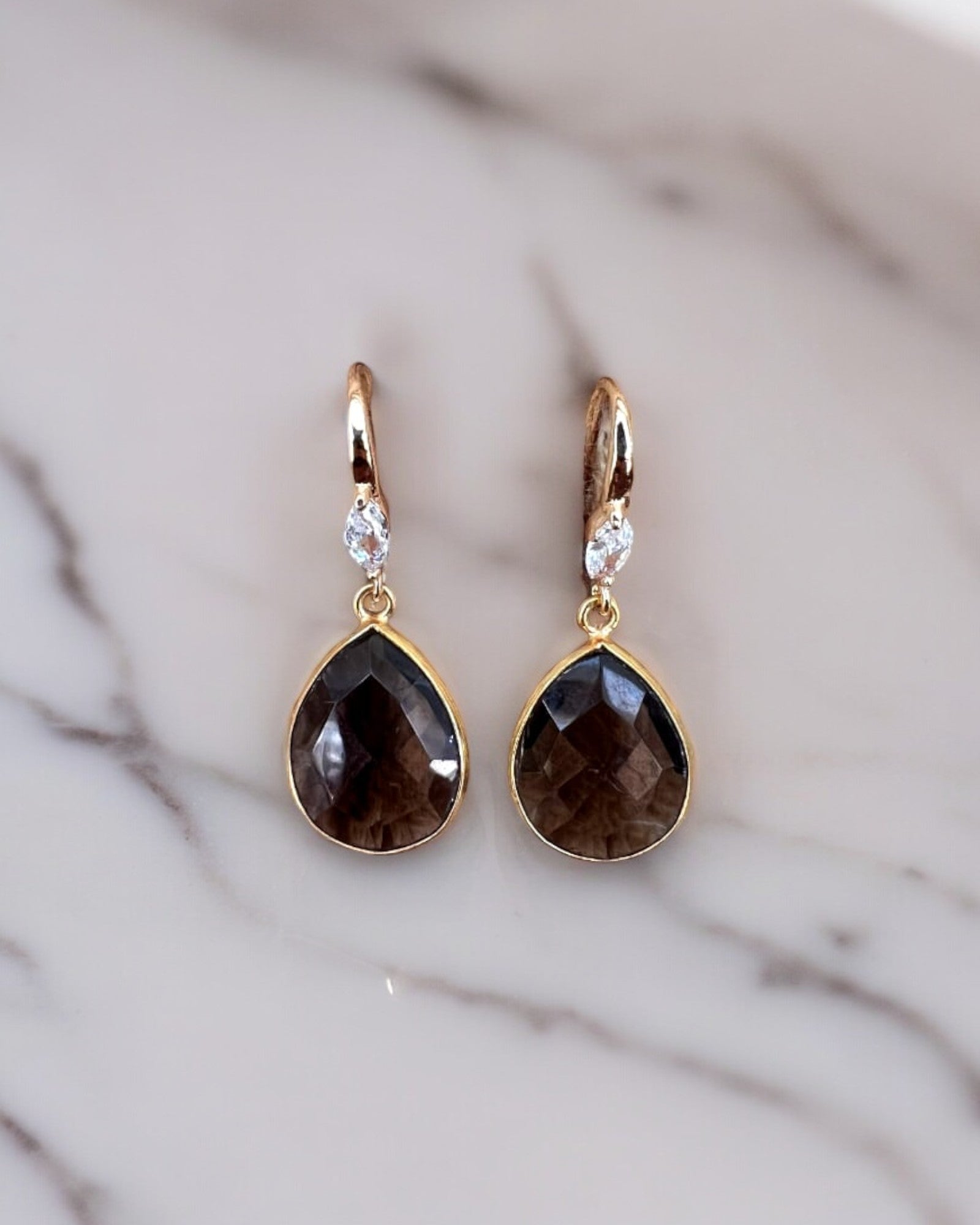 Aretes laminados en oro de 18K, con cristales e incrustación de circonias.